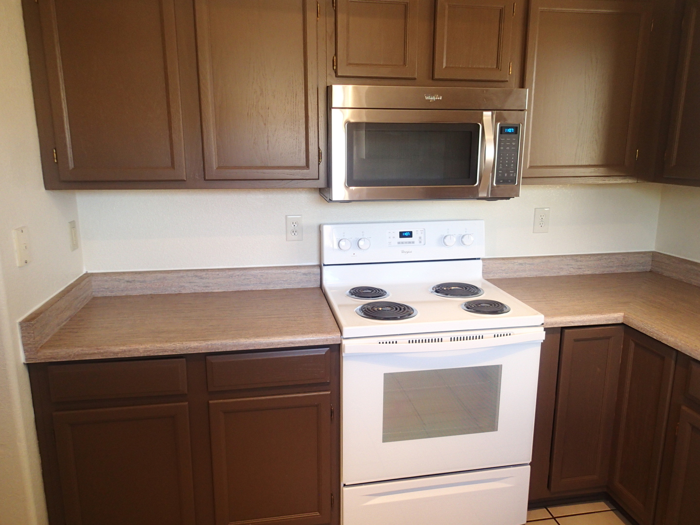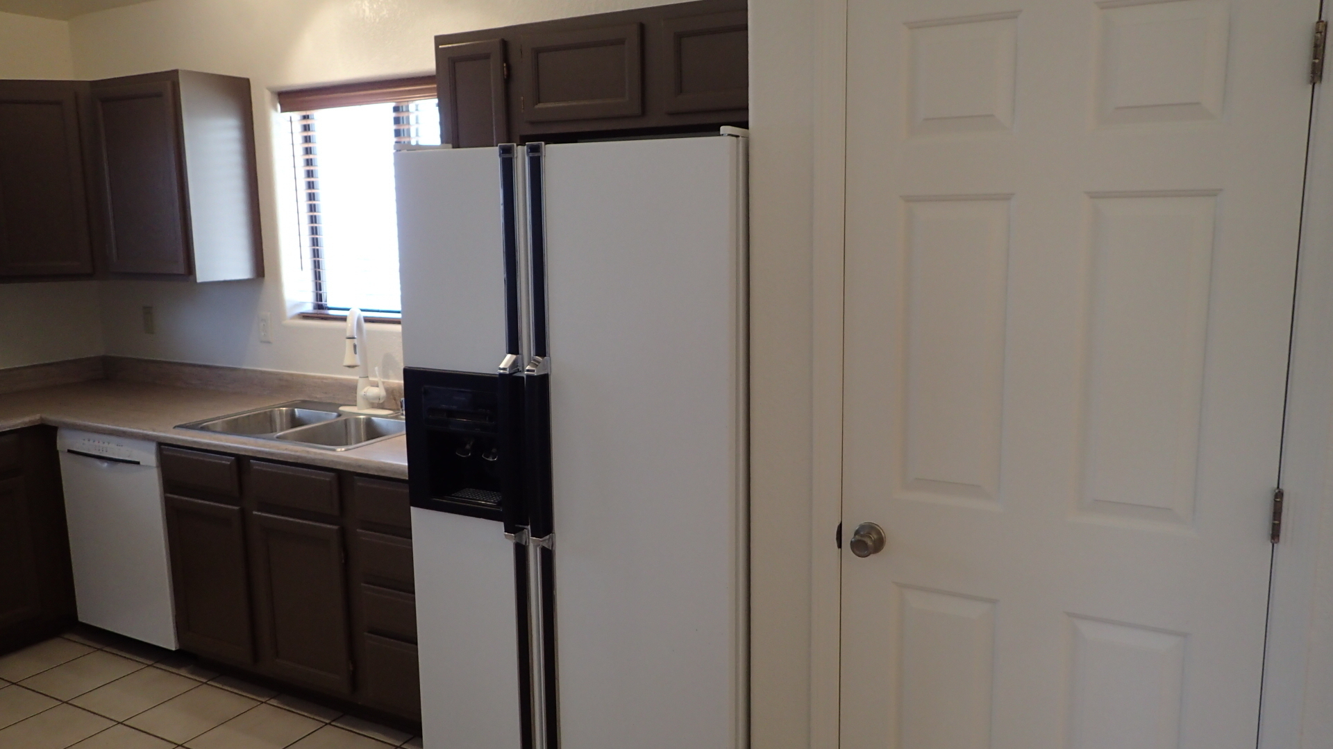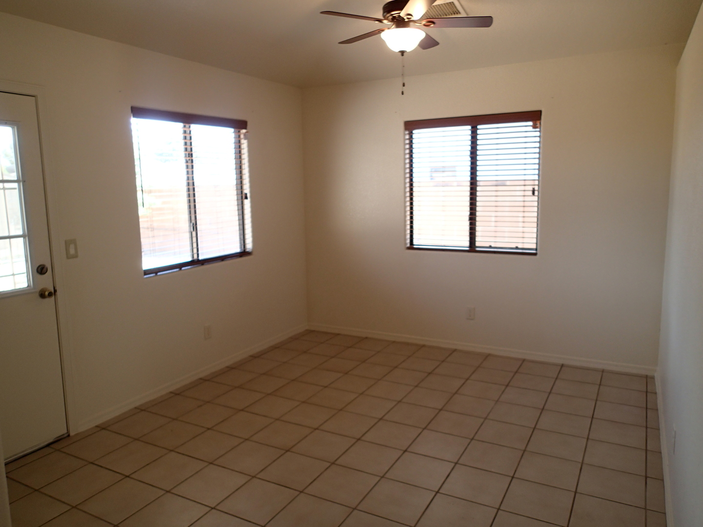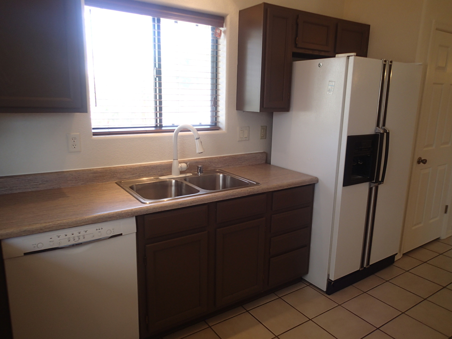 Very pleasant and welcoming house with wood laminate and tile floors, wood burning fireplace in living room draws the attention when entering, separate dining room behind the kitchen with an electric stove, dishwasher, garbage disposal, microwave above stove, two pantry closets, 3 bedrooms, 2 baths, family bath has shower/tub combination, ceiling fans in all bedrooms, living room and dining room, nice size closets, master bedroom has a walk in closet, master bath has a separate walk in shower, central a/c, wood blinds throughout, 2 car garage, patio in backyard, block wall fence in backyard, desert landscaping. Ready for occupancy, come see and move in. Pets case by case small only.
